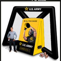 The Football QB Wedge Deluxe is the same as our traditional QB pass wedge but we’ve added extended ball control zones on each side with UV treated netting. This game inflates quickly with an internal blower and can be built in your colors and logos specific to Army, Navy, Marines, Air Force, National Guard, MWR, USO and more. The front comes digitally printed with the football action player or may be customized to meet your needs. You can also brand the sides and back of the game. Included with the QB Wedge is a built in ball return and footballs.